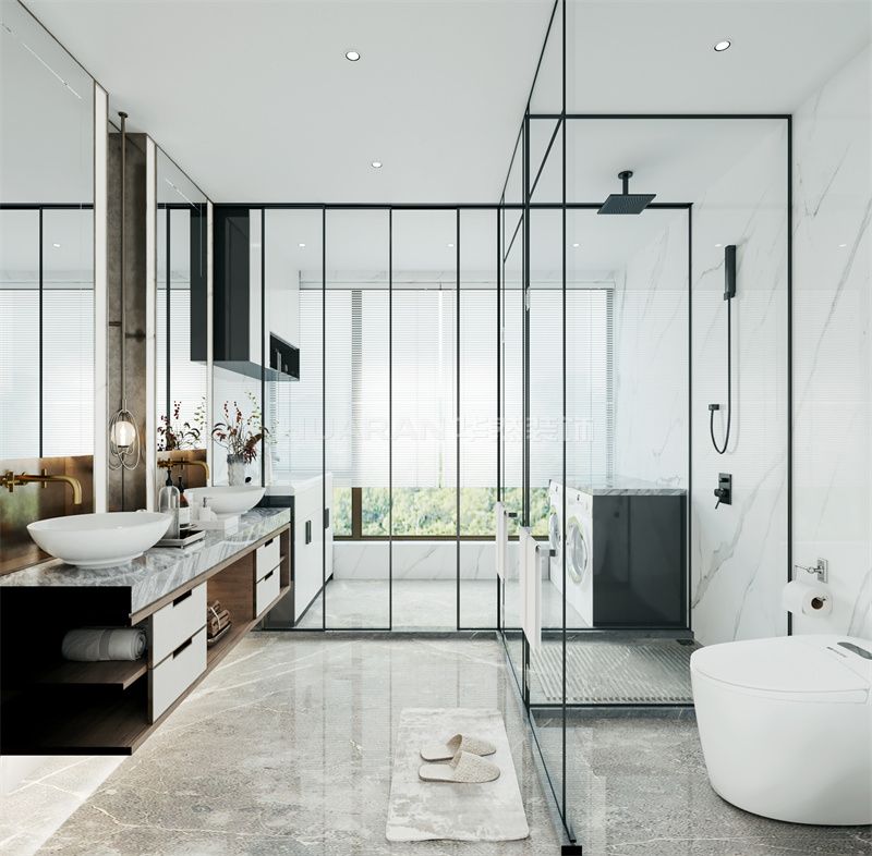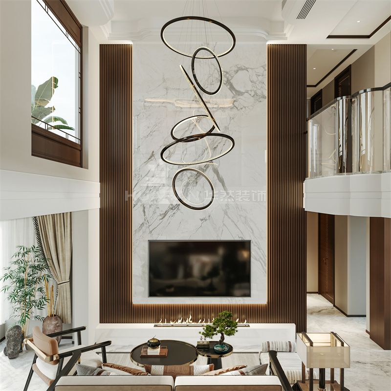 本案例为新中式宅邸,以大理石、实木诠释东方雅致。挑空客厅借螺旋艺术吊灯、山水纹背景墙,融合传统意境与现代审美;红墙楼梯、钢琴区营造人文氛围。休闲区博古架、中式立柱呼应古韵,藏书阁暖光设计尽显静谧。卧室以粉墙、水晶灯调和温馨,卫浴玻璃隔断增通透。整体通过空间层次、材质碰撞与文化符号,打造兼具传承与创新的诗意居所。