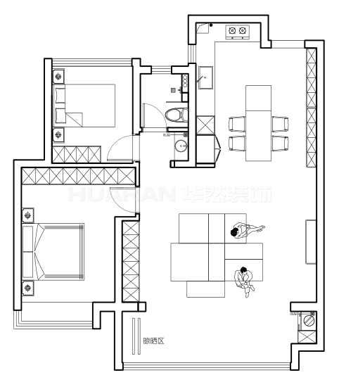平面规划说明:主卧门进行改造,客厅增加收纳柜子,开放式厨房