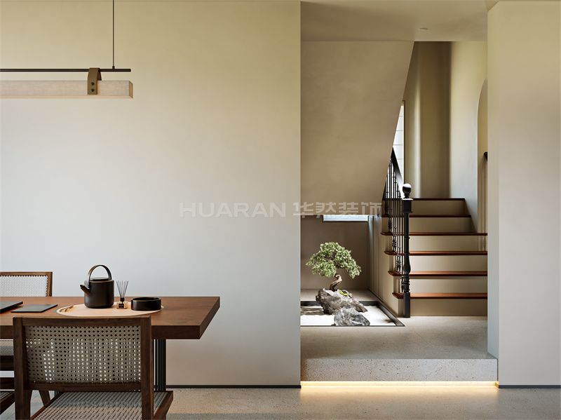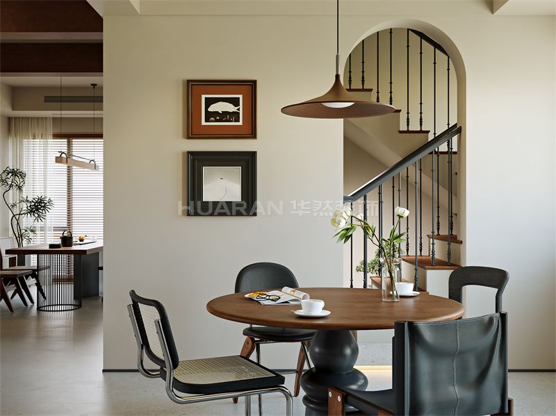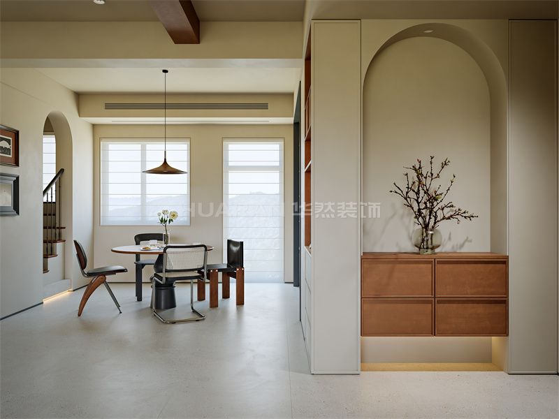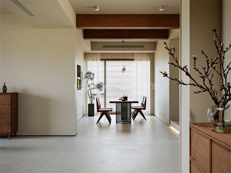 本案例为现代侘寂风格家装设计,以米色、木色为主色调,营造出质朴自然的氛围。公共区域布局开阔,客厅米色沙发搭配木质茶几,线条柔和,复古吊灯与艺术挂画增添质感。餐厨区木质餐桌与同色系餐椅结合,采光良好,绿植点缀更显生机。全屋通过自然材质、柔和色彩与精致软装,打造出舒适且具格调的居住体验,展现出侘寂美学中对自然与质朴的追求。