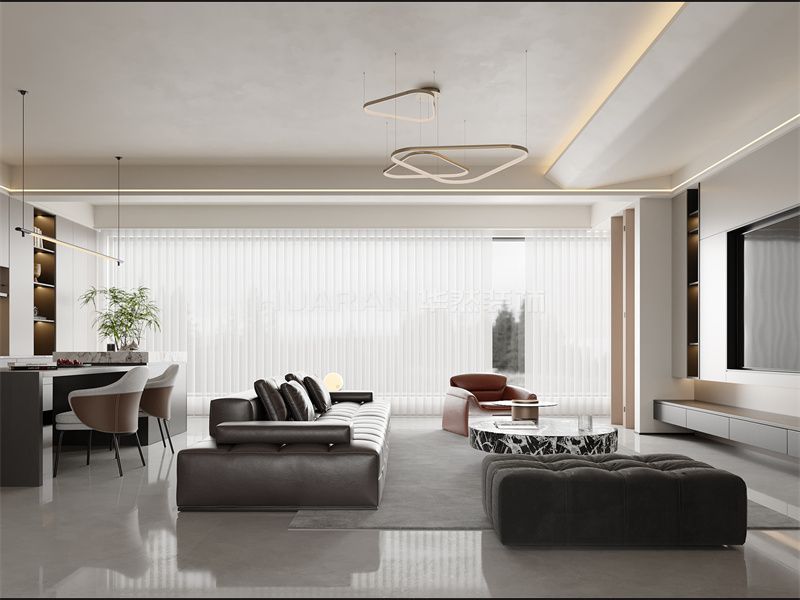 本案例为现代轻奢风格家装设计,以灰、棕为主色调,搭配金属、皮质等元素,营造精致高级氛围。公共区域开阔,客厅深棕皮质沙发配大理石茶几,线条利落,几何吊灯与潮玩摆件具设计感。儿童房浅灰床具搭清新软装,靠窗书桌满足学习需求。主卧简约大气,深棕床具显质感。全屋通过材质碰撞、精致软装与合理规划,打造出品质与舒适兼具的居住体验,彰显轻奢生活格调。